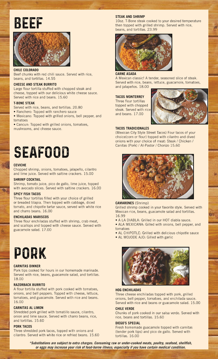 Shrimp, Scallops, and imitation crab grilled with onions, bell peppers, tomatoes and our ranchero sauce.