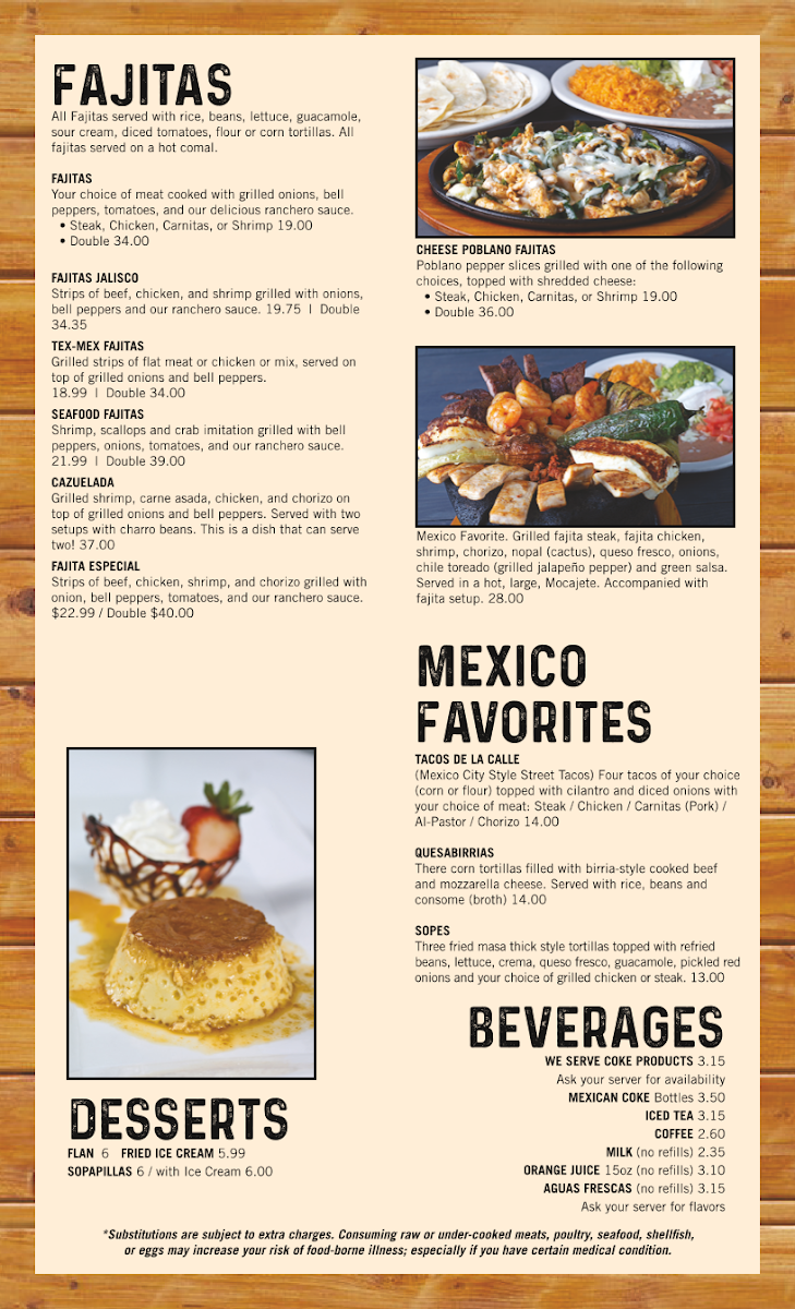 Grilled fajita steak, fajitas chicken, shrimp, chorizo, nopal(cactus), queso fresco, onions, chile toreado(grilled jalapeno pepper), and green salsa. Accompanied with Rice and beans